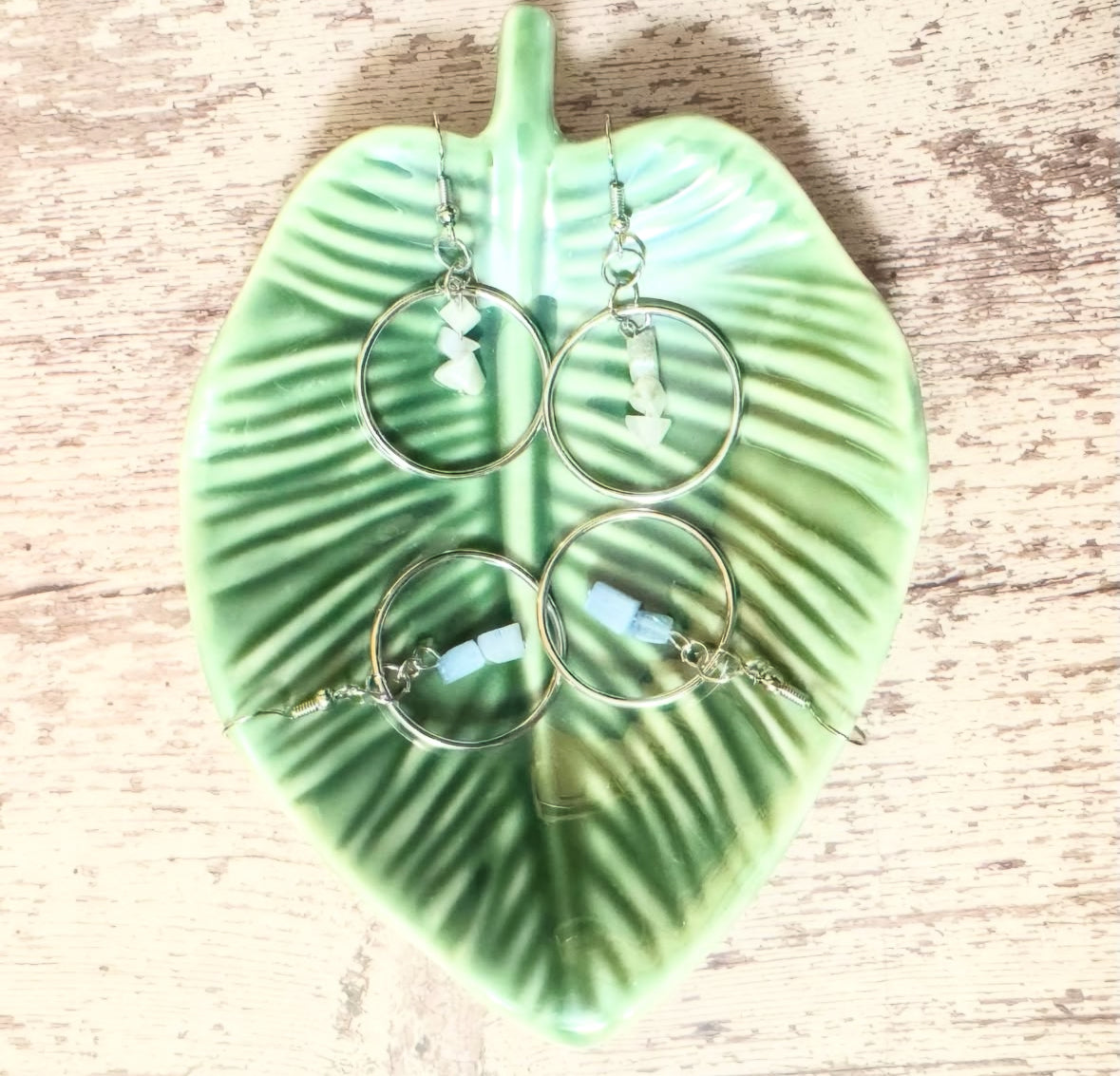 These silver hoops feature chip bead strands in soft white — catching the light like little coastal glimmers.